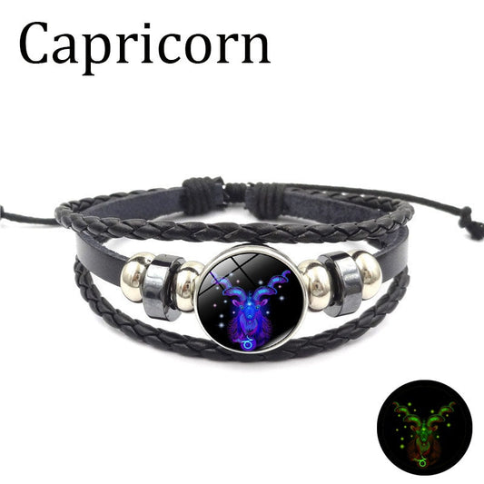12 Zodiac Signs Constellation Bracelet Men's Women's Trend Multi-layer Woven Leather Punk Couple Bracelet Gift Accessory